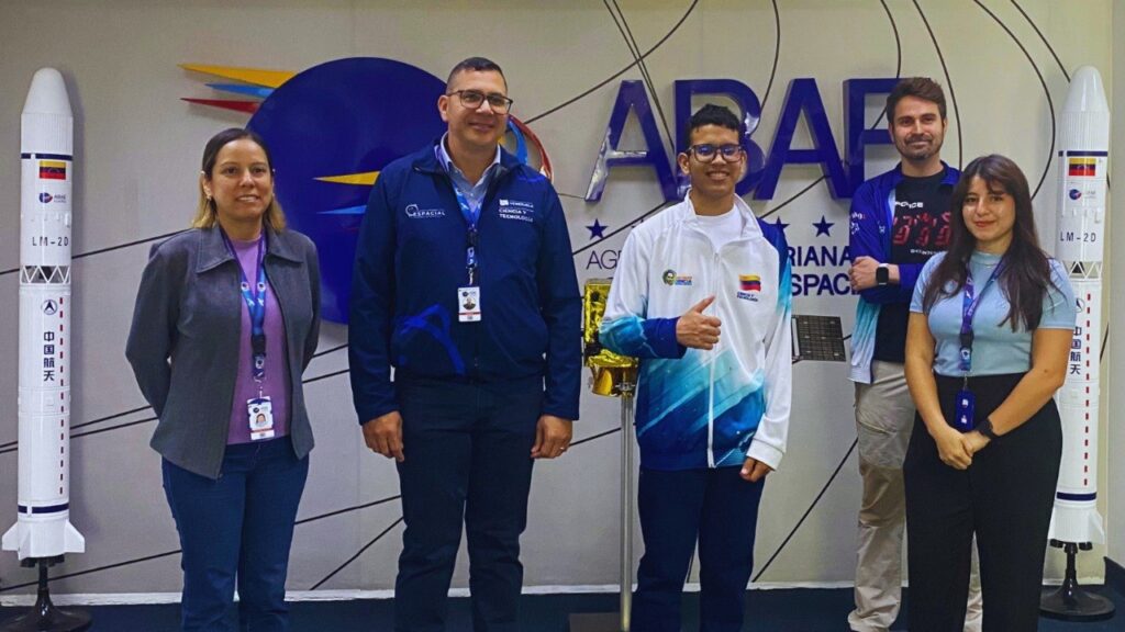 En los espacios del Complejo Tecnológico Simón Rodríguez, ubicado en la Base Aérea Generalísimo Francisco de Miranda, La Carlota, Caracas, el presidente de la ABAE, coronel Adolfo Godoy, y la directora ejecutiva de la institución, María Guarirapa, recibieron a este talentoso estudiante, miembro del Programa Nacional Semilleros Científicos.