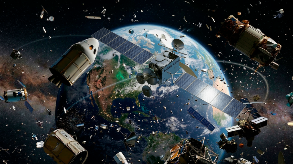 Los desechos espaciales son fragmentos de cohetes, restos de explosiones y colisiones entre satélites que permanecen en órbita sin control alrededor de la Tierra. Aunque invisibles a simple vista, representan una amenaza real: un objeto de apenas 10 centímetros desplazándose a más de 27.000 kilómetros por hora posee energía cinética suficiente para destruir un satélite operativo, dañar sus paneles solares o antenas, e incluso obligar a realizar costosas maniobras de evasión que acortan su vida útil. Así ha ocurrido en reiteradas ocasiones en la Estación Espacial Internacional.